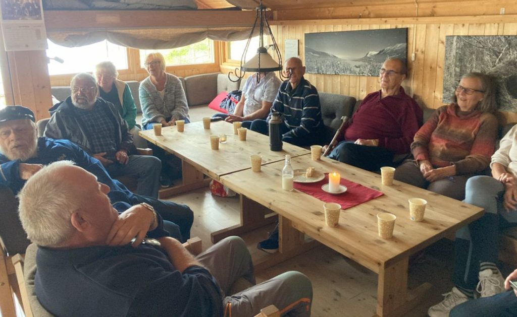 Første punkt på dagsorden var kaffe og kringle, samtidig som det ble gitt informasjon om Fønhuskoia. Dette er ei turisthytte som ble bygd i 2012, og eies av Ringerike Turistforening.