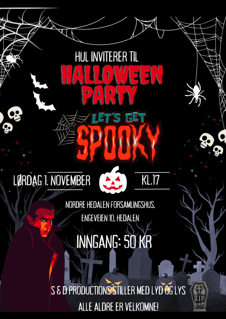 HUL inviterer til Halloween Party på Lokalet lørdag 1. november kl. 17.00.