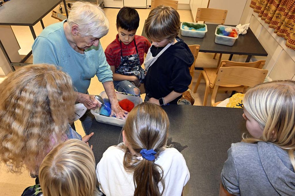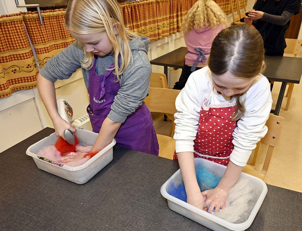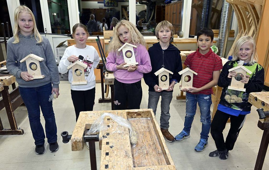12 barn fra 4. til og med 7. klassetrinn deltok. Barna laget fuglemater med meiskule på sløyden og tovet sitteunderlag eller ullbilde på kjøkkenet.