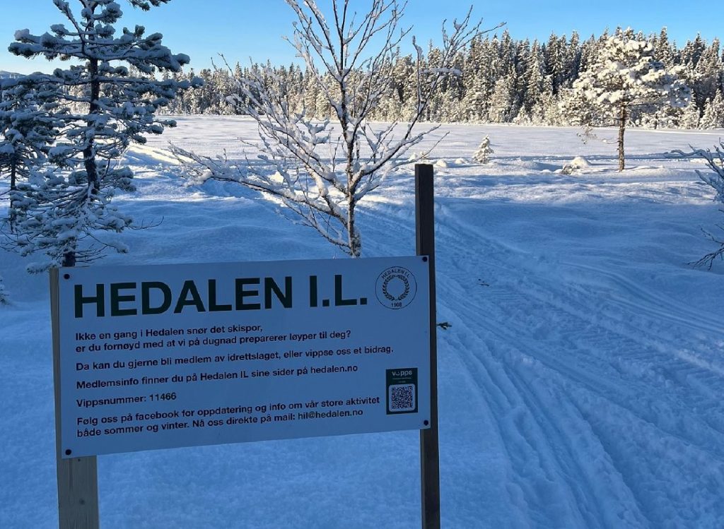 Nå har Hedalen idrettslag laget skiløyper fra Jennlismyra via Bergstjern til gapahuken. Vær forsiktig. Det er litt lite snø!