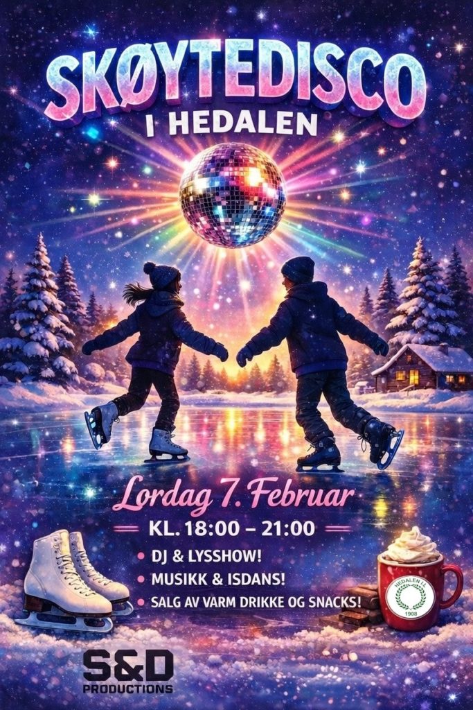 Det blir skøytedisco i Hedalen lørdag 7. februar fra kl. 18.00–21.00.